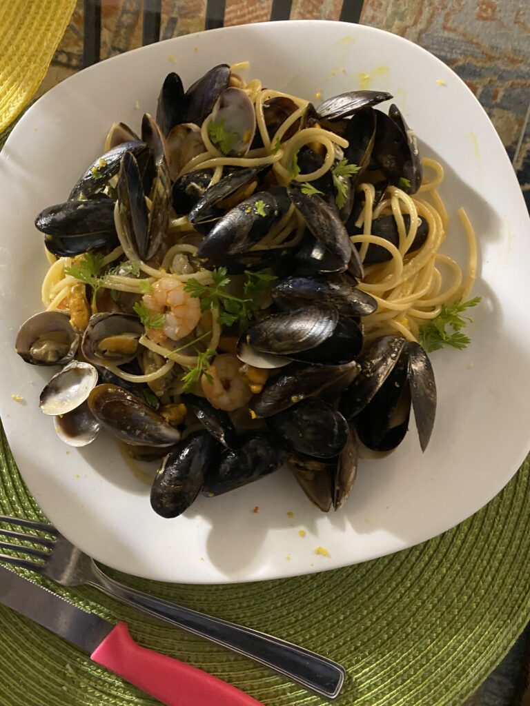 Spaghetti Cozze, Vongole e Gamberi. Agrumati all’arancia